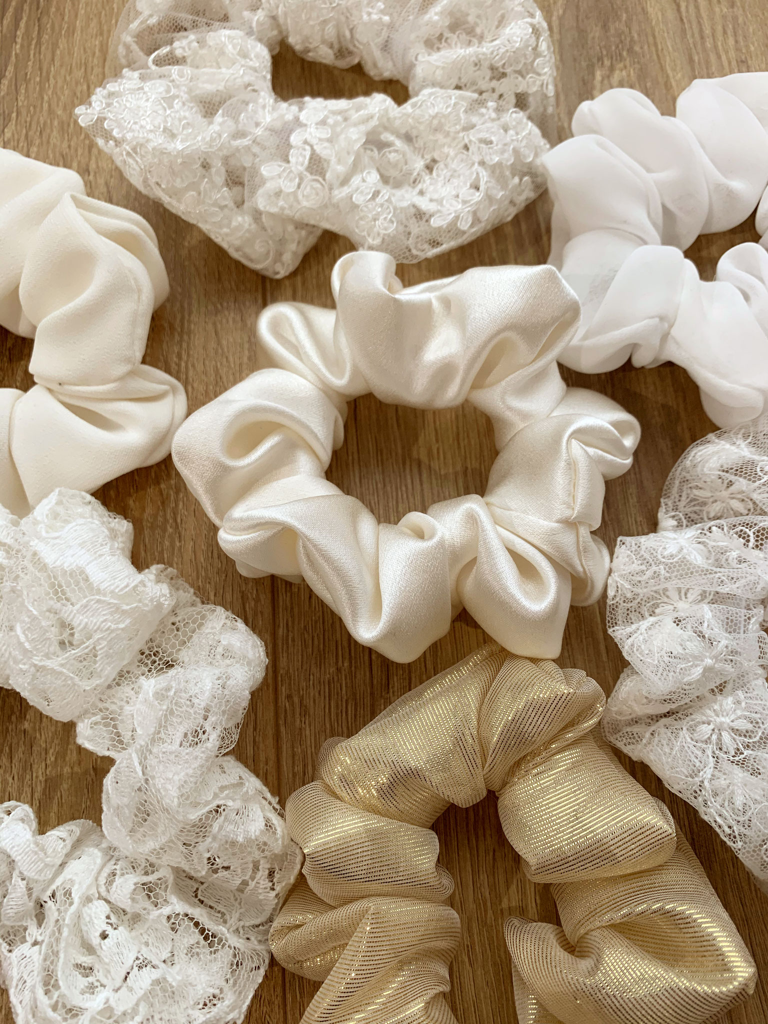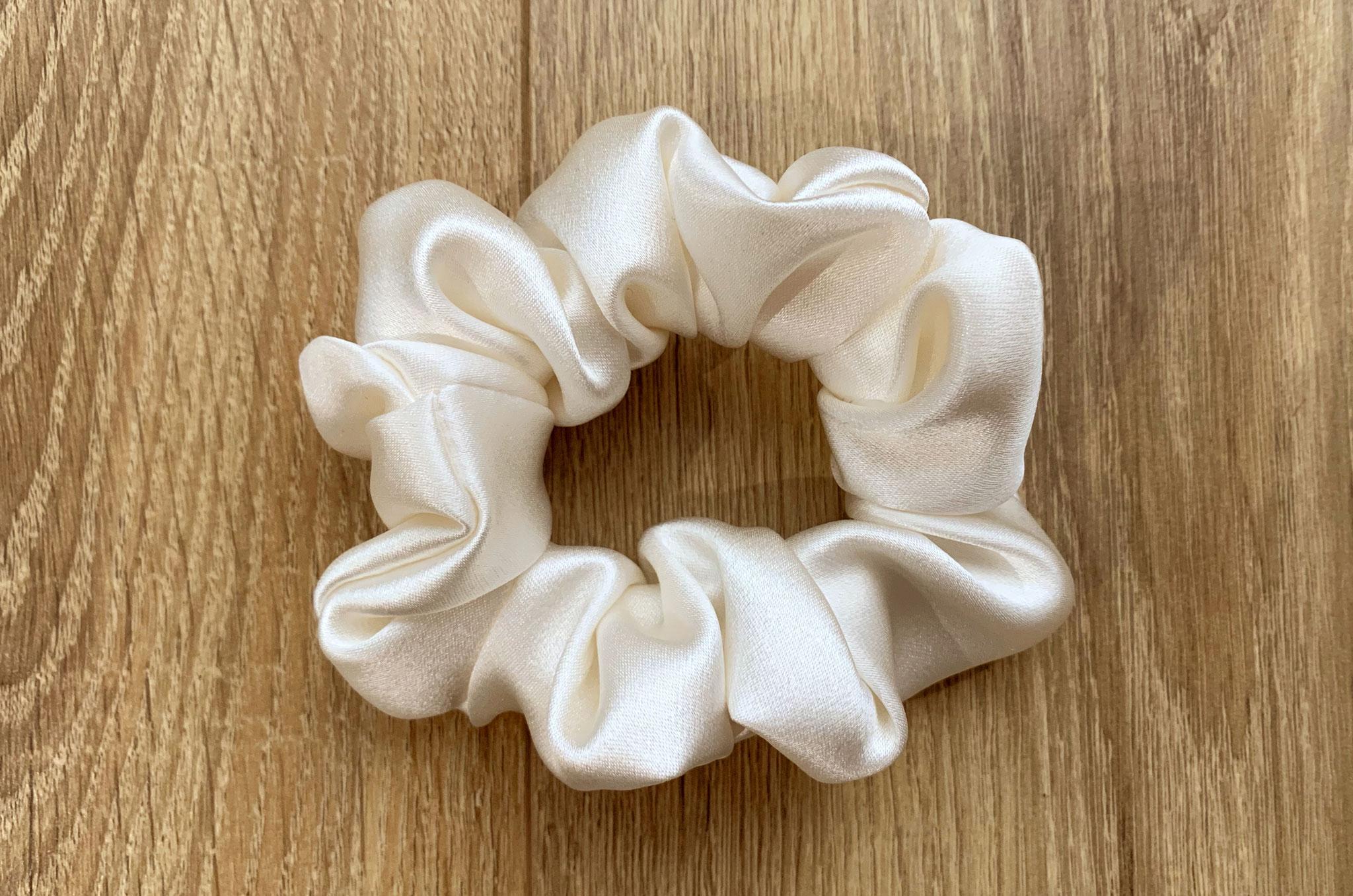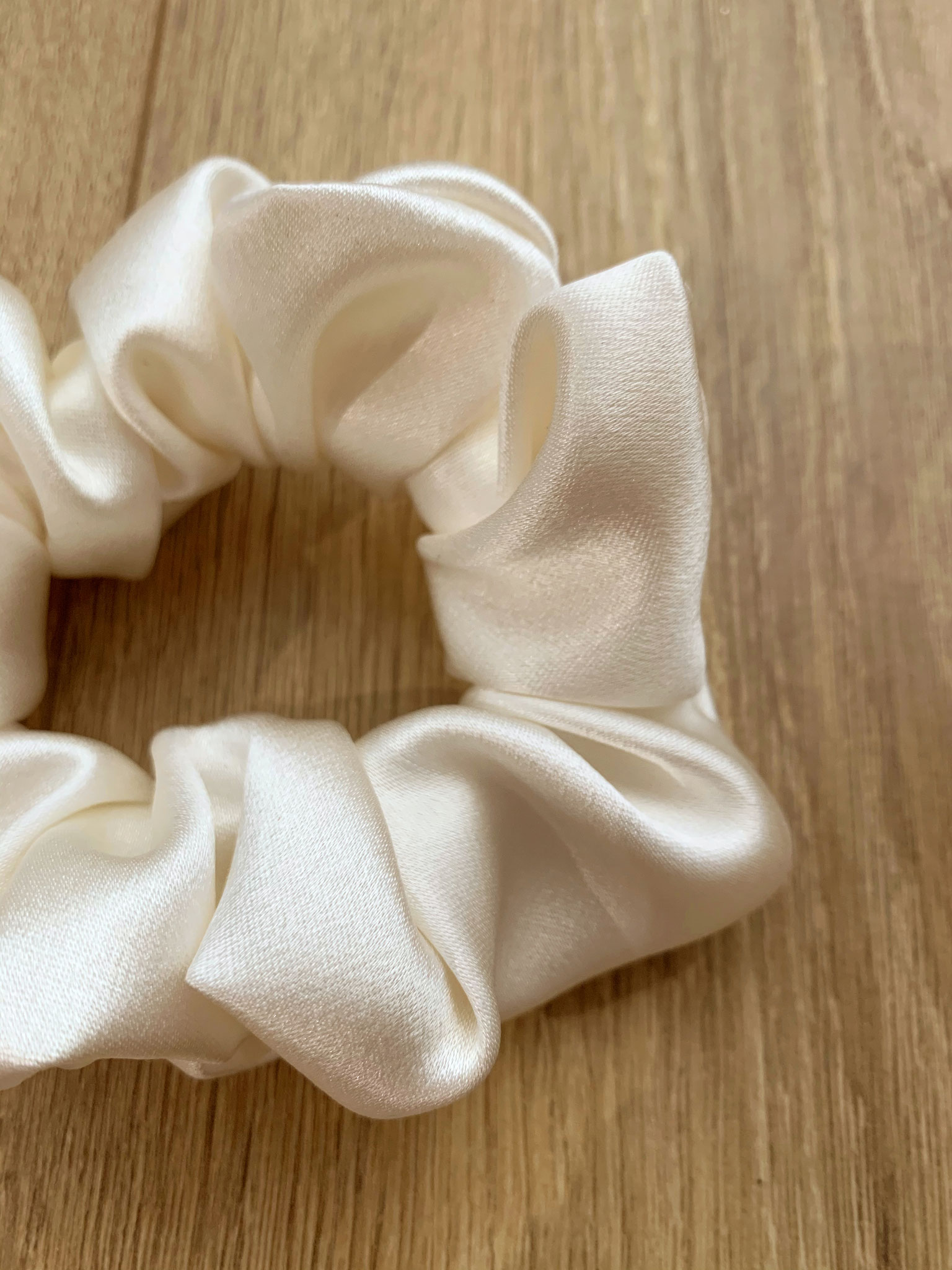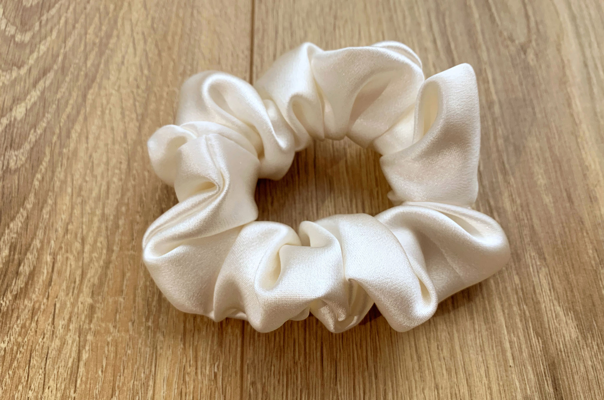 Chouchou froncé en satin de soie, à offrir ou à s'offrir. A porter avec votre tenue de mariage, ou bien lors du brunch ou du voyage de noces. Et même au quotidien. Et pourquoi pas même gâter vos Bridemaids !